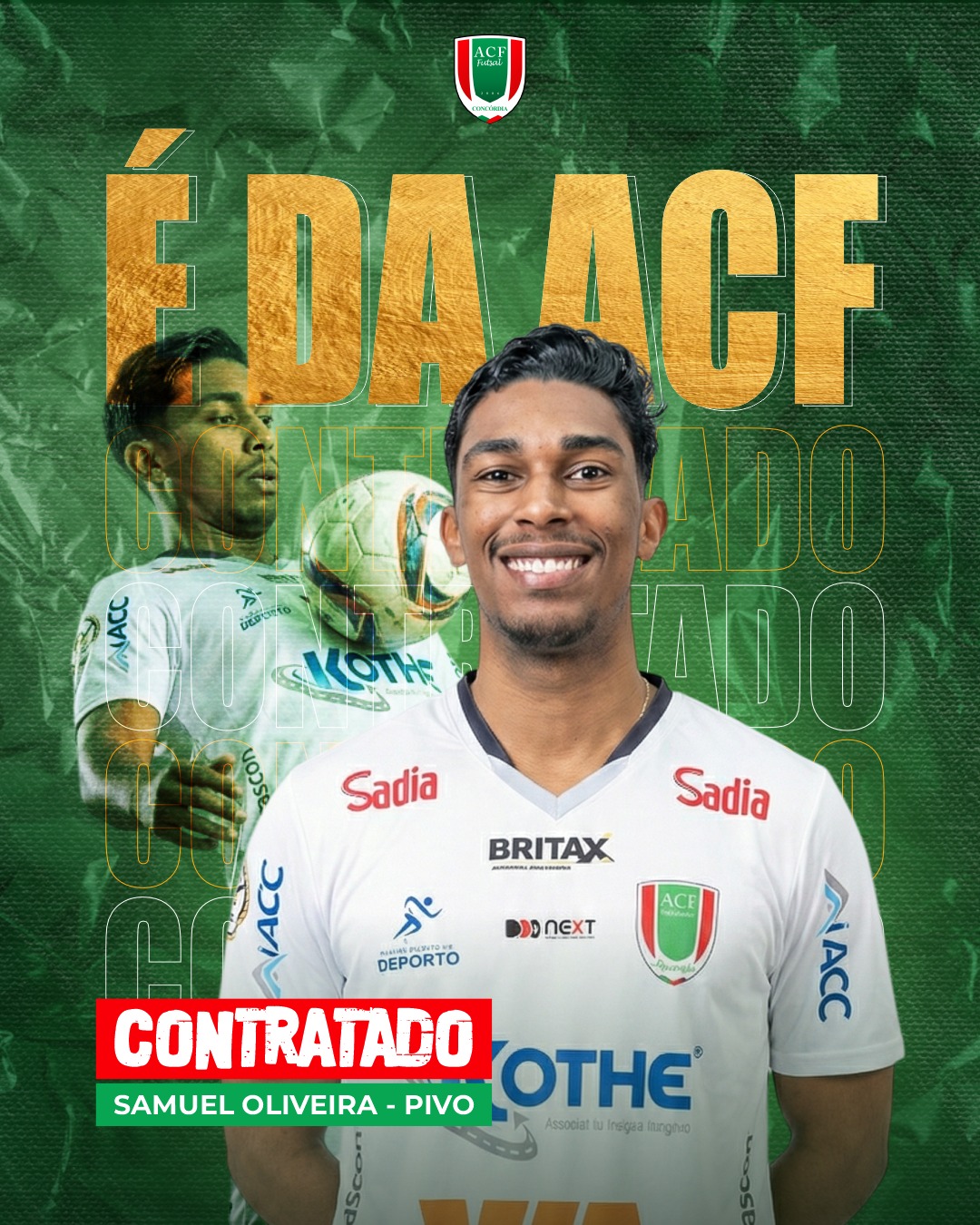 Associação Concordiense de Futsal (ACF) anunciou a primeira contração para a temporada de 2026. O primeiro reforço do time é o pivô Samuel Oliveira. Atleta estava Traipu que foi vice-campeão Brasileiro 2025.